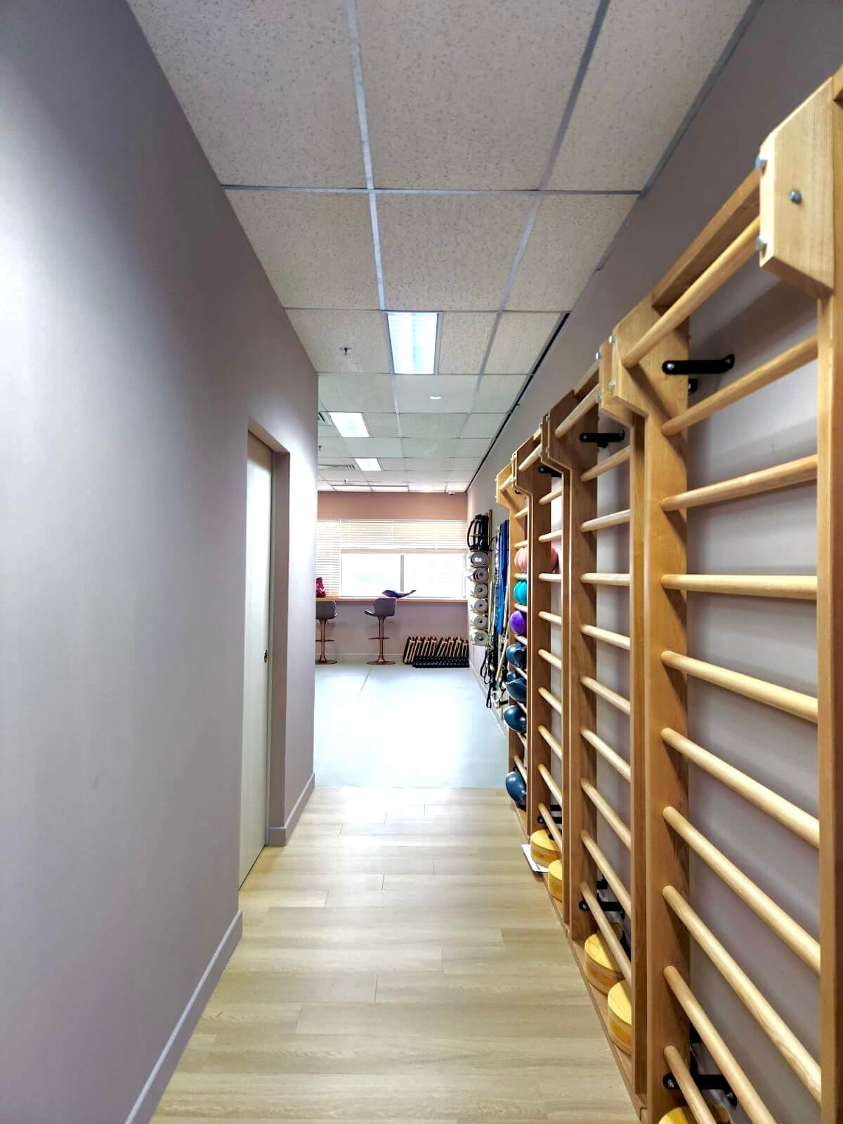 The reception area is set up to welcome you warmly and our waiting areas are equipped with professional barre ladders which students can use for deep stretching and core muscle conditioning while waiting before or in between classes.